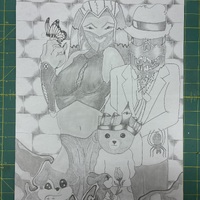 - drawing, pencil, two dimensional, representational, cartoon, animals, fantasy, anime, people