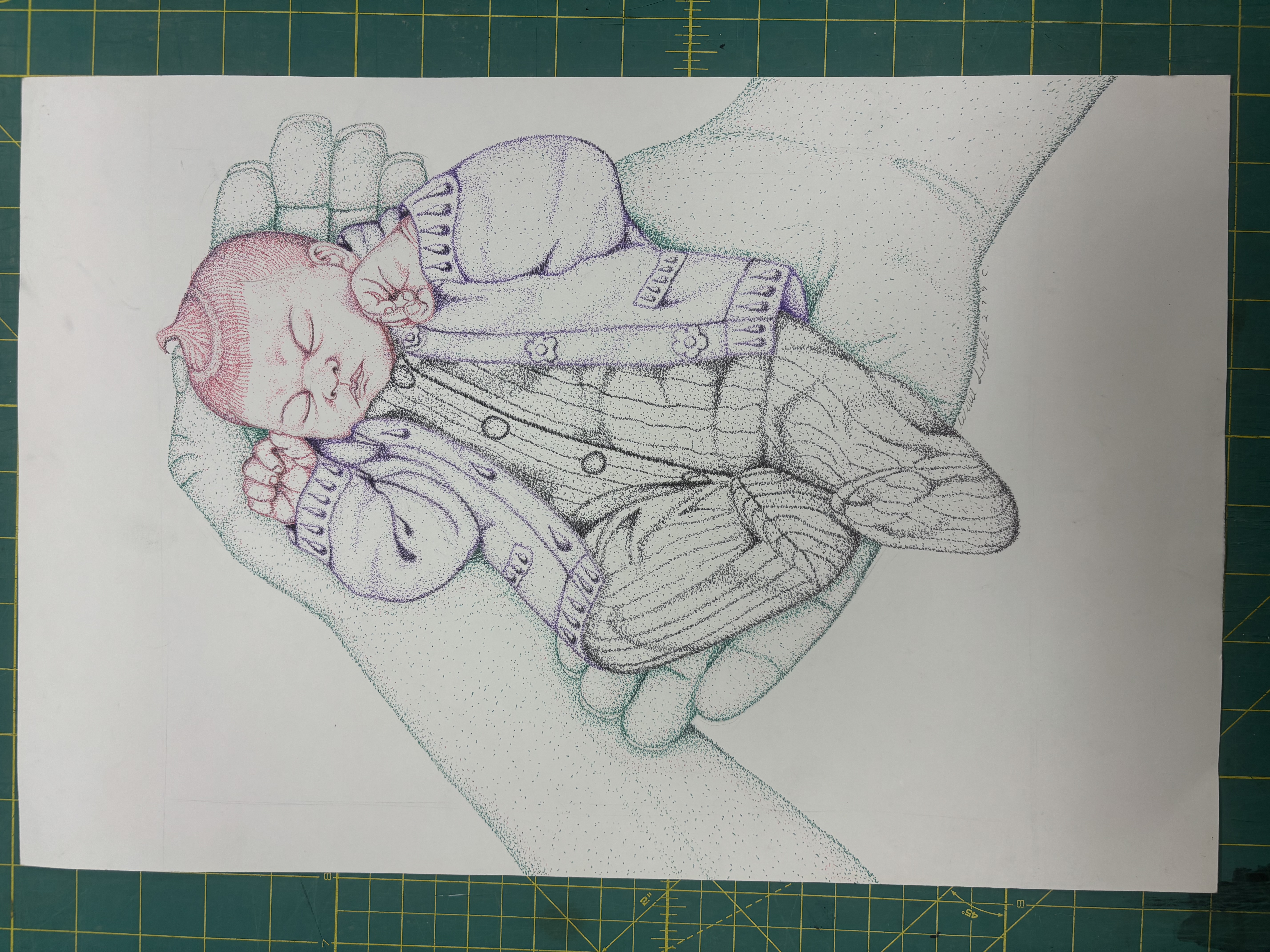 - drawing, childhood, people, pen, stippling, two dimensional, representational, babies