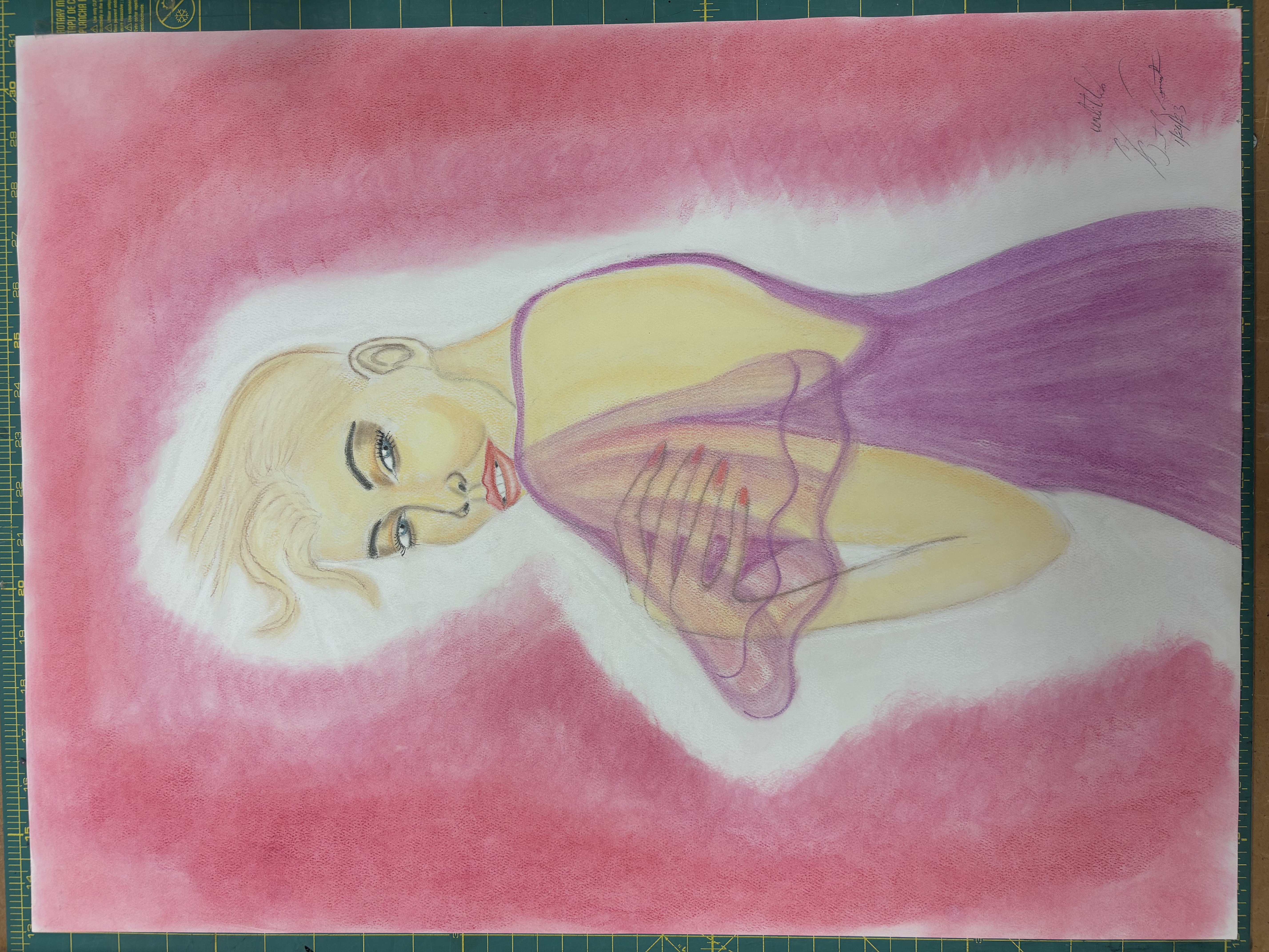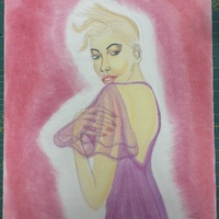 - drawing, woman, two dimensional, portrait, photorealist, pastel, representational