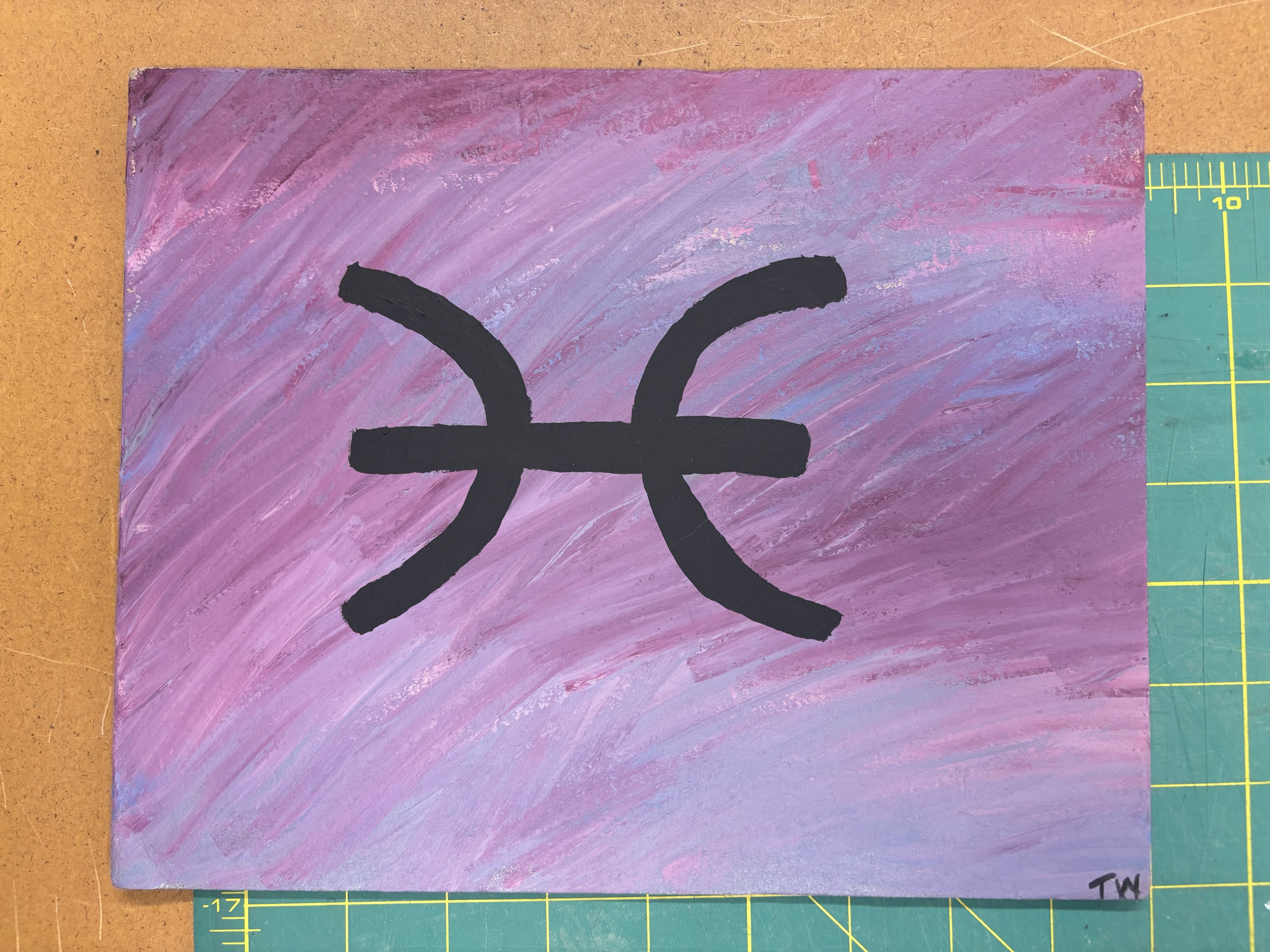 - pisces symbol on a pink and purple background