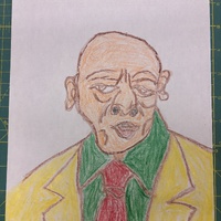 - abstract portrait of a man with a yellow jacket, green shirt, and red tie