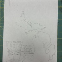 - THANK YOU' in diagonal from upper left corner to bottom right in front of the state of michigan. In the bottom left corner is in image of a man in a hat pointing under the words 'TOM DALDIN! UTR'
