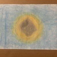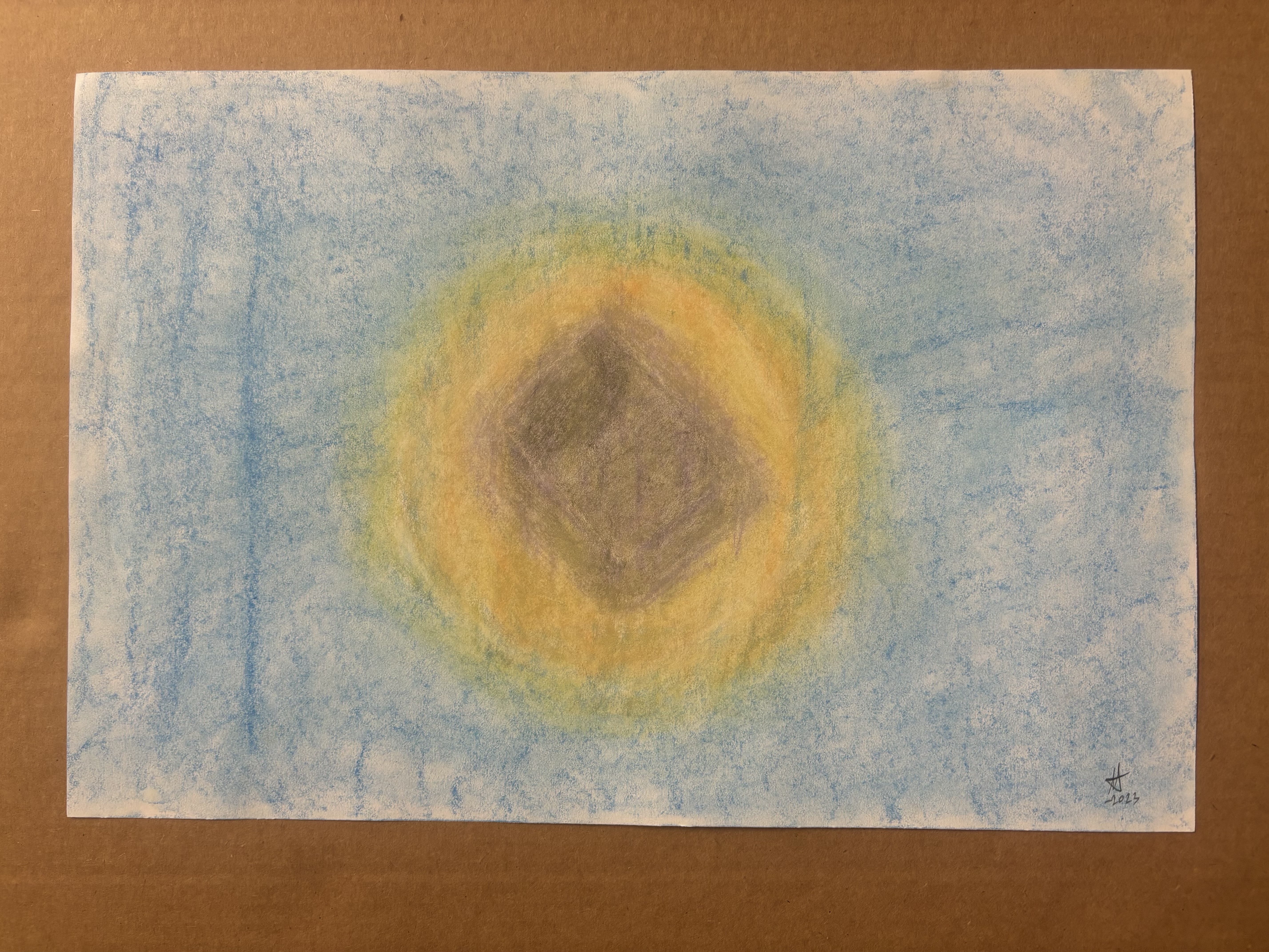 - Yellow-Orange dot with grey diamond in the middle on a blue background