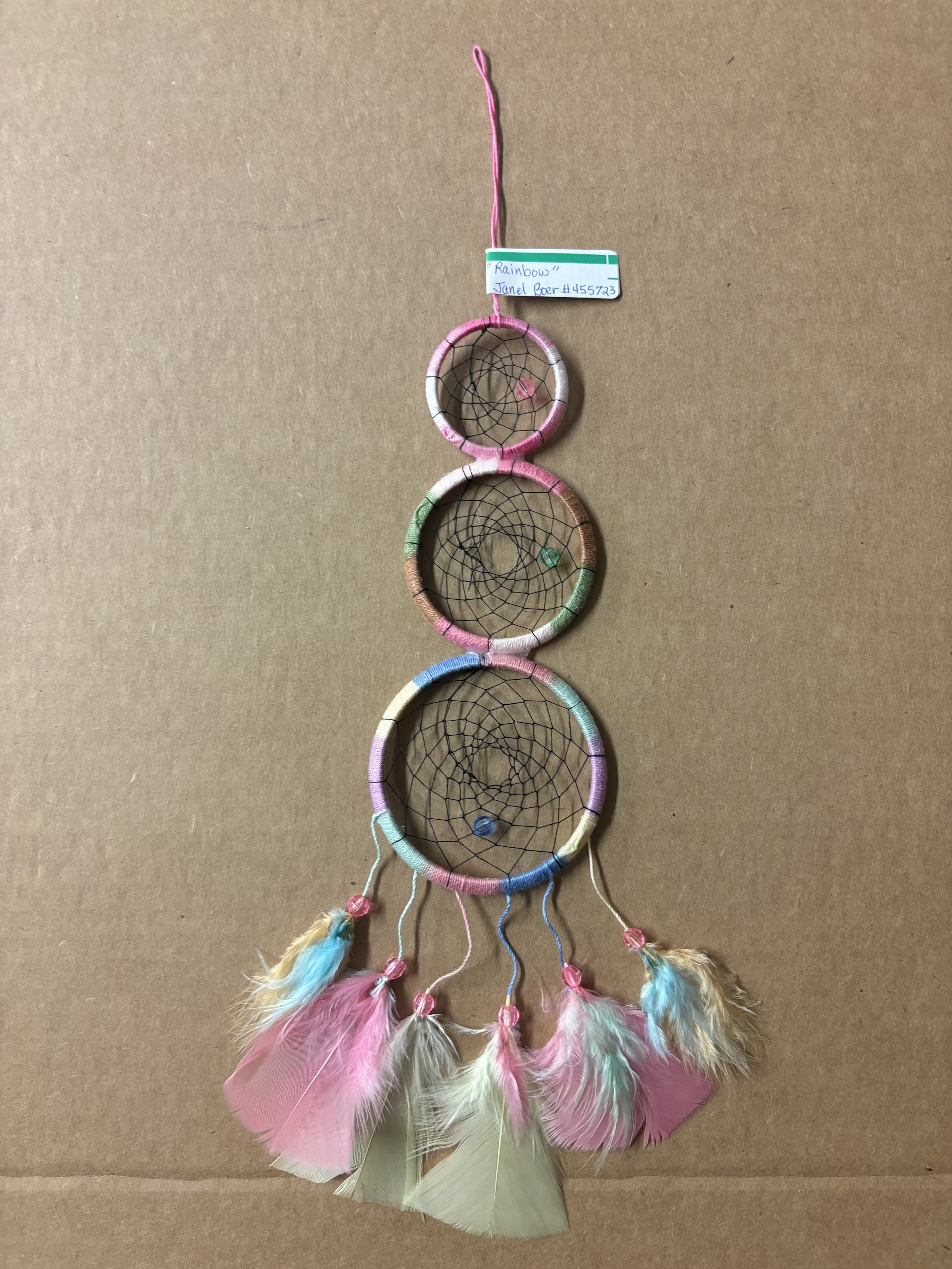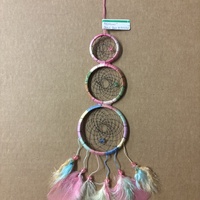 - 3 tiered pink, periwinkle, brown, and green dreamcatcher.