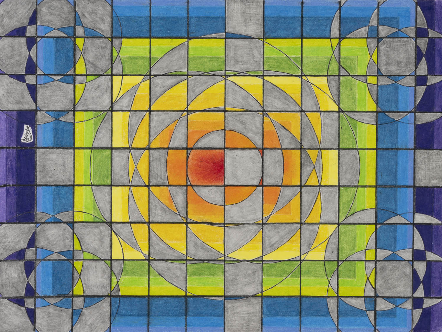 - Pen, colored pencils, graphite