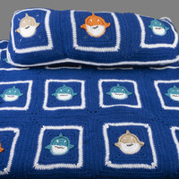 3D Shark Granny Square Blanket and Pillow