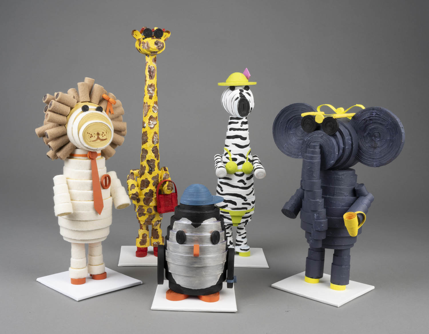 Pete the penguin, Ella the Elephant, Zola the Zebra, Lola the Lion, Gigi the Giraffe