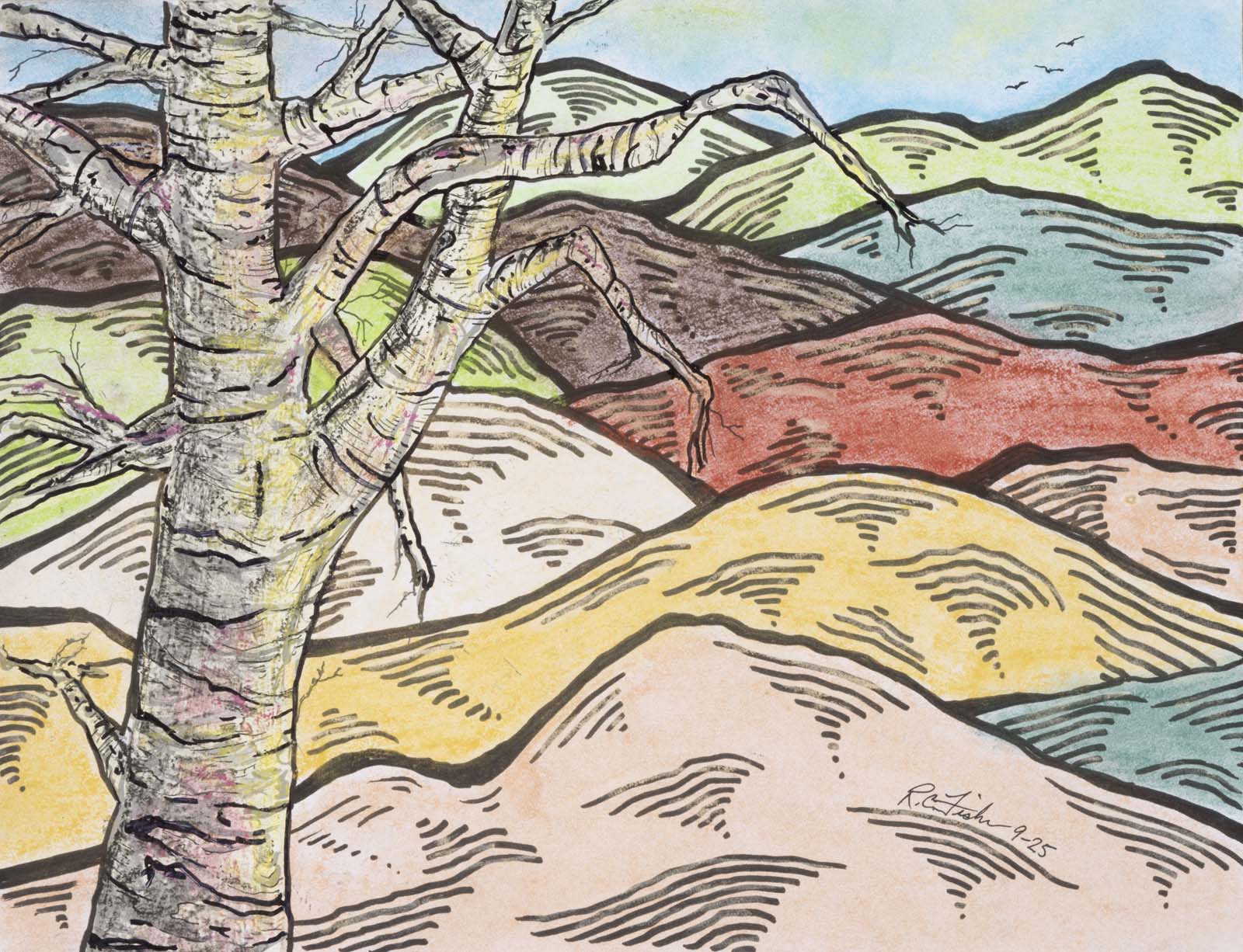 - black sharpie, colored pencil, pastels