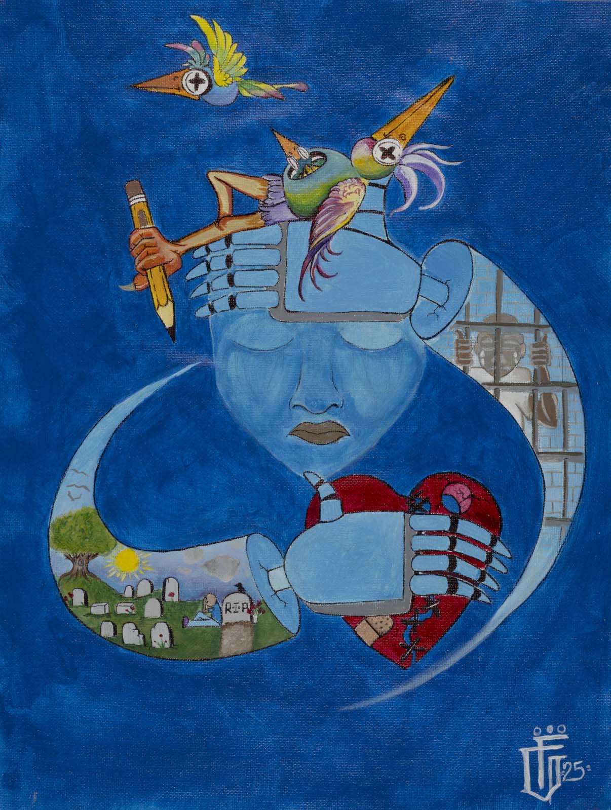 - acrylic, ink pen