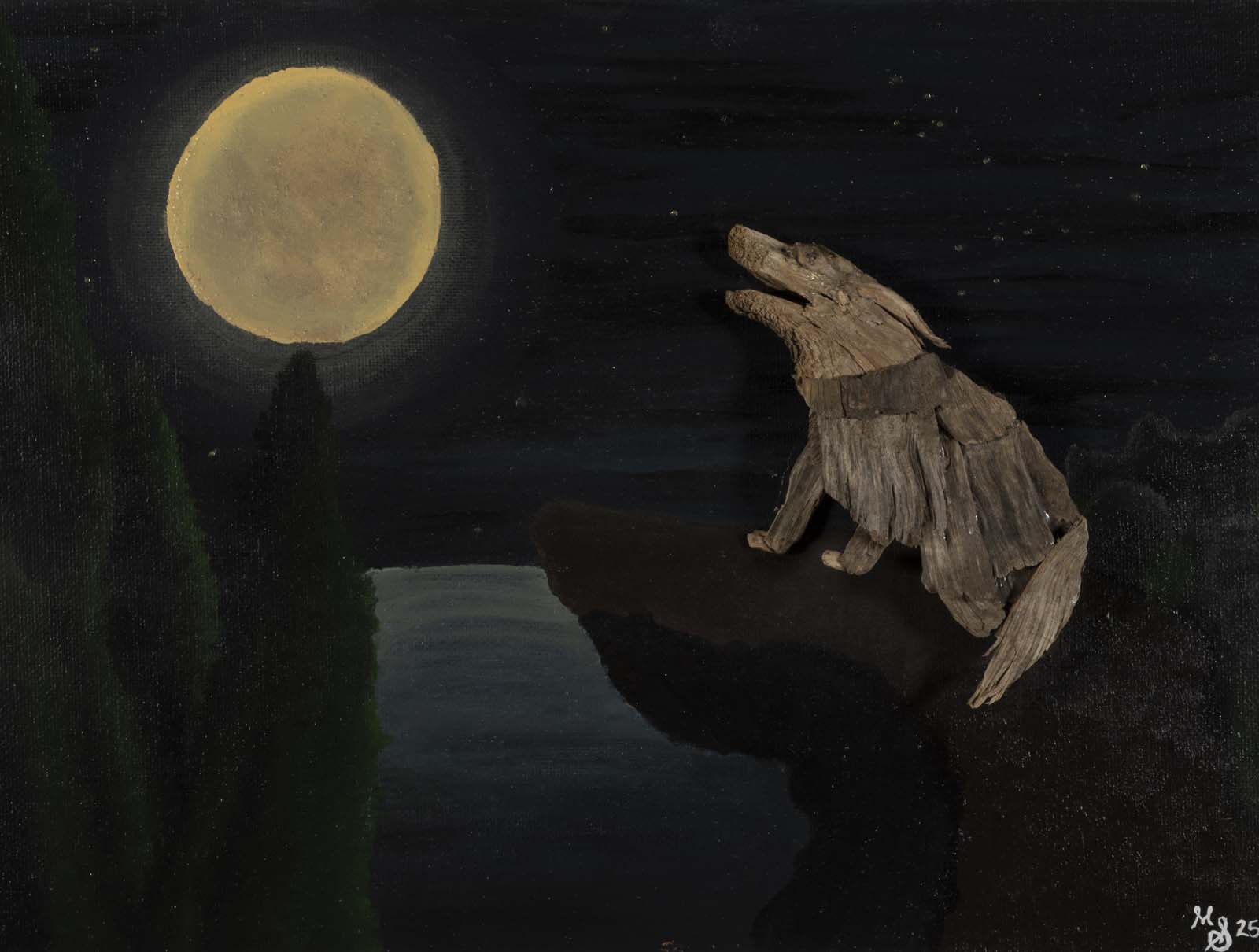 - woodchips, glitter, acrylic paint